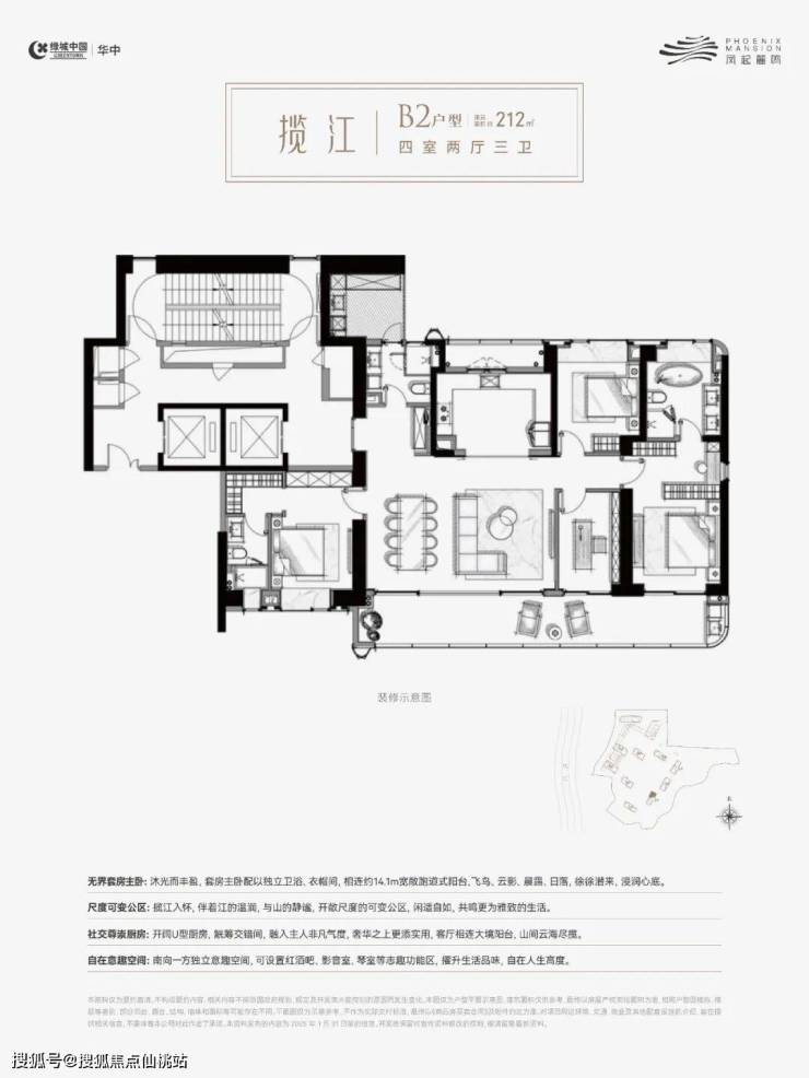 ⭐210㎡四室两厅三卫,400万上车凤起麓鸣绝版户型