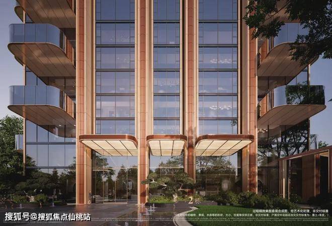 天樾云颂二期的建筑外立面,结合香槟色铝板与大面玻璃,构筑成“全面屏幕墙”。约8.3米高的入户大堂,将归家体验的奢华与尊崇感拉满。