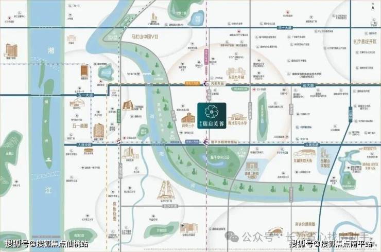 项目毗邻浏阳河,十里风光旖旎,艺术聚落依水而生,串联两百余亩隆平中央公园与东驿公园双园胜景,城市之心营造生态栖居范本。