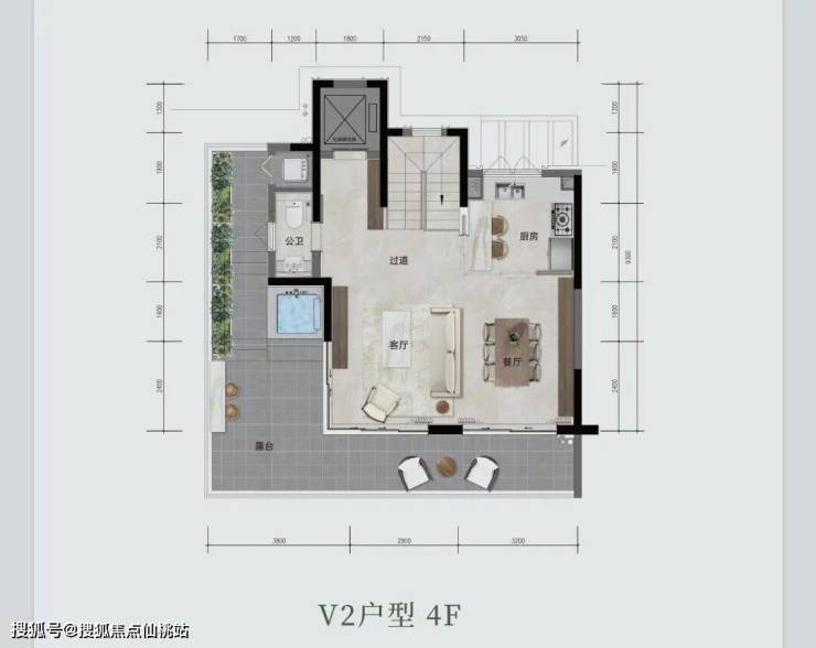 上叠院墅 V2 户型,约 160㎡(或 158.1㎡ ),三室两厅三卫。有私人电梯、双重玄关,约 6.1 米度假观景横厅,270° 三面采光 。约 30㎡L 型花园露台,能欣赏 270° 环幕景观。主卧奢阔,配备步入式衣帽间与独立卫浴,还有可拓展空间随心改造。