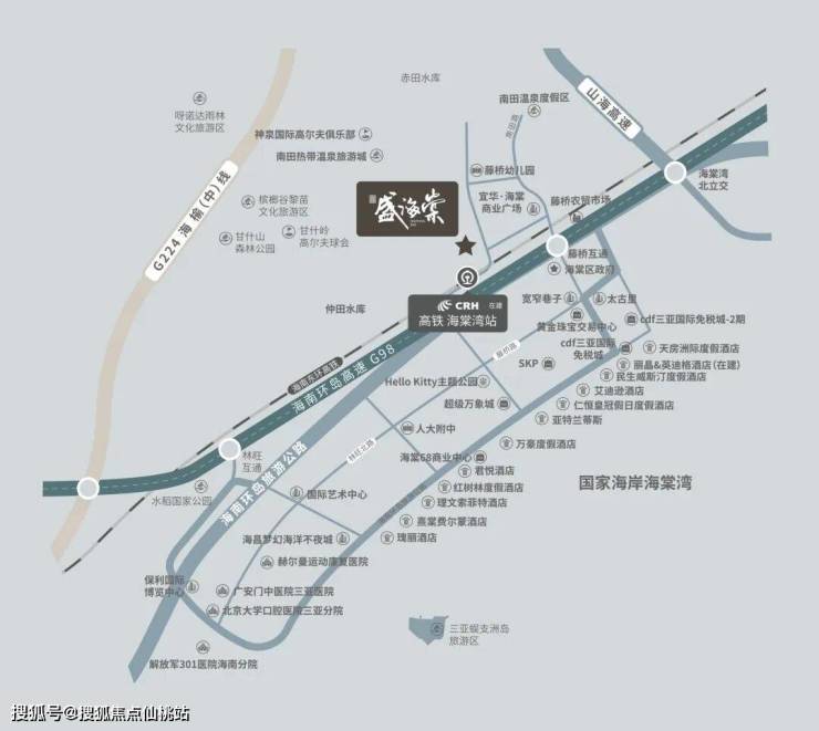 交通超便利,距离三亚市中心约 28km 、海棠湾高铁站(规划中)约 2km 、三亚凤凰国际机场约 35km 。周围商业氛围浓厚,CDF 免税城、河心岛、太古里、SKP、超级万象城等旗舰商业云集 。医疗资源也很优质,北大口腔医院三亚医院、301 解放军总医院海南医院为健康保驾护航 。