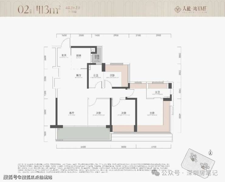 113㎡四房两卫是入门首选,采用竖厅设计,南北通透,6.4米宽大阳台连接客厅与次卧。户型动静分区明确,主卧带独立卫浴和飘窗,实际使用面积接近120㎡,空间利用率极高。这个户型4开间朝南,南向面海,是上车门槛最低的户型。