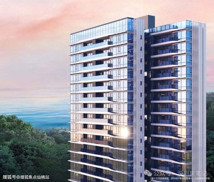 从小区规划来看,项目走的是现代豪宅路线。外立面采用水晶灰蓝玻璃+全铝板设计,这是深圳湾豪宅同款配置,颜值很能打。约100米的建筑高度,270°瞰海飘窗,把南向头排海景变成家的日常。