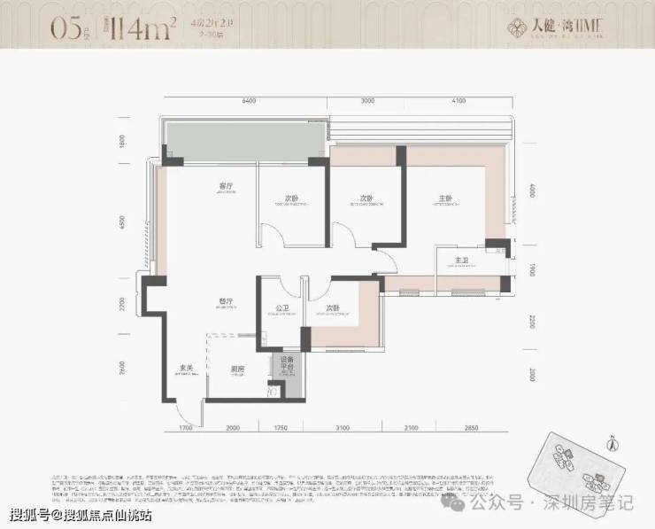 114㎡四房两卫设计独特,客厅270°采光观景,远眺山景,视野非常好。这个户型很安静,适合对采光和视野有要求的家庭。