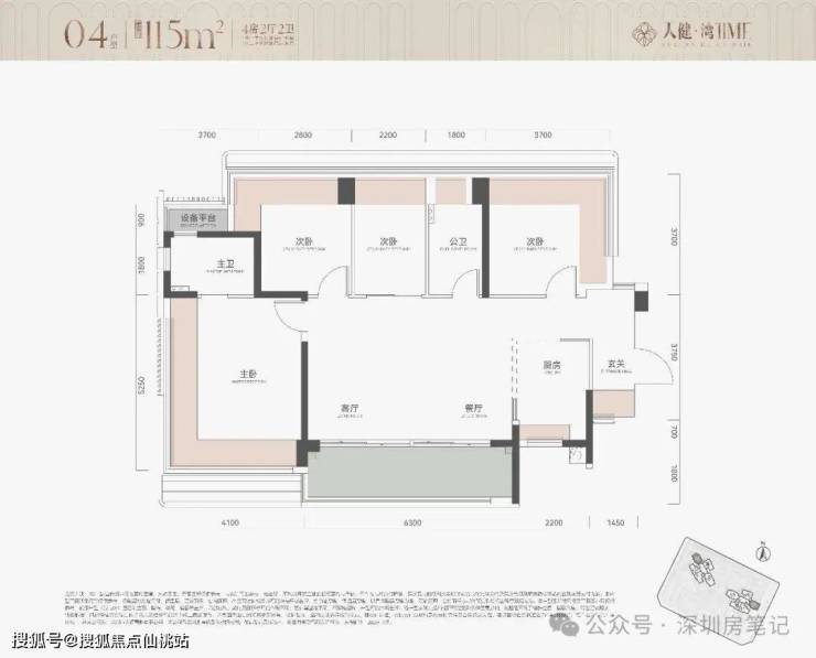 04户型 115㎡四房:727-892万(大横厅南北通)