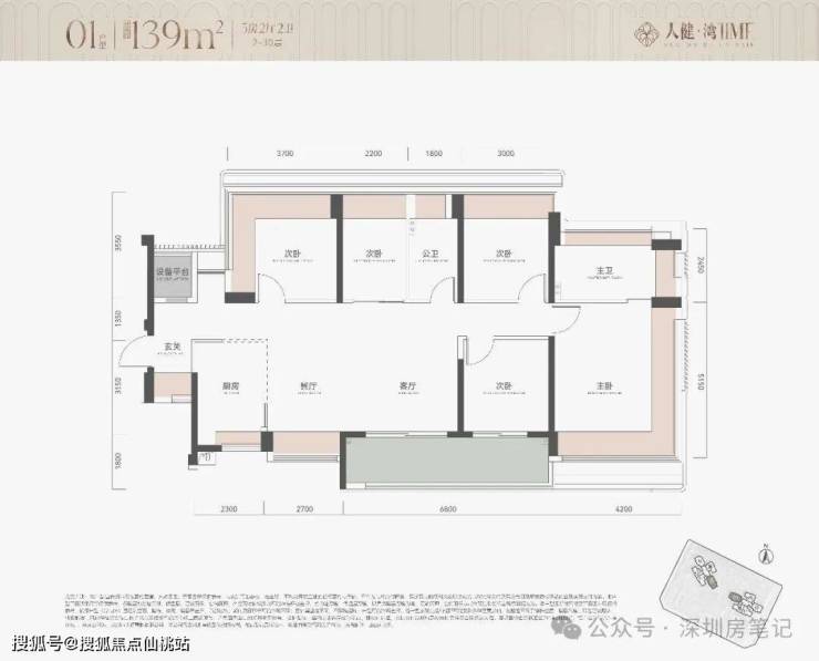 01户型 139㎡五房:943-1148万(南北通无敌海景)