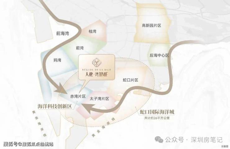 项目位于南山区赤湾,赤湾六路与天后宫路交汇处东侧。赤湾雄踞"蛇口-太子湾-前海湾"海岸线C位,左承前海发展辐射,右享蛇口国际高端生活方式,独享发展高端国际海洋科技规划,未来将实现超2000亿产值,吸纳约6万高端人才集聚,是深圳西海岸线发展的最后一块拼图。项目聚合了湾区+特区+示范区+自贸区四重国家战略红利。