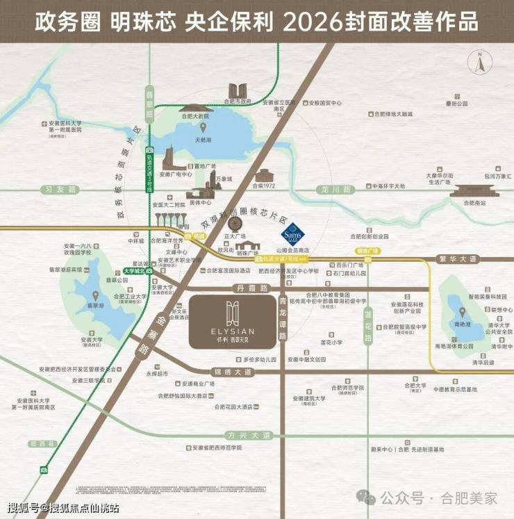距离徽园、海洋馆、欢乐岛1.6公里,距离翡翠湖公园2.8公里,15分钟直达合肥奥体中心、合柴1972。