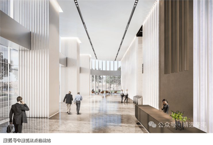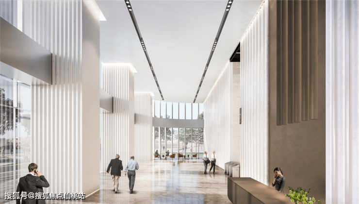 约11米层高,融合“光辉未来”设计理念,以充满能量的线性符号和天花模块群设计,打造核心大堂气派形象。