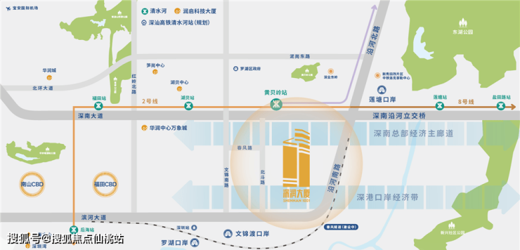 ①深南大道、滨河大道双主干道交汇,文锦路、春风隧道(建设中)便利通勤