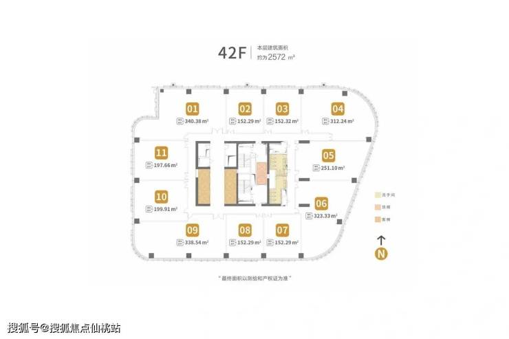 【层高】:标准层高4.2米,超高区(48F以上)4.5米