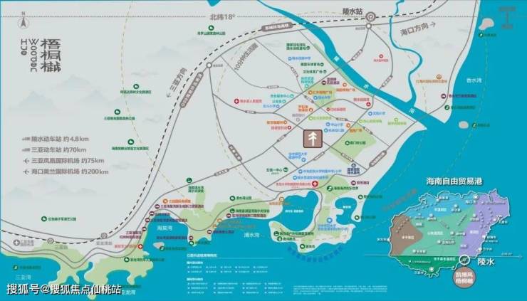 海陆空全维立体交通 内连中心 外通世界距G98高速黎安互通约4公里距陵水动车站约4.8公里距离三亚凤凰机场约75公里