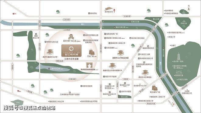 地段优势:繁华配套在侧。项目左邻泉州通政中心小学田中校区,右临鲤城万达广场(在建),东南侧为泉州演艺剧场综合体(在建),周边还有泉州实验中学鲤城附属学校、泉州五中江南校区江南中央公园(规划)等丰沛资源环伺。