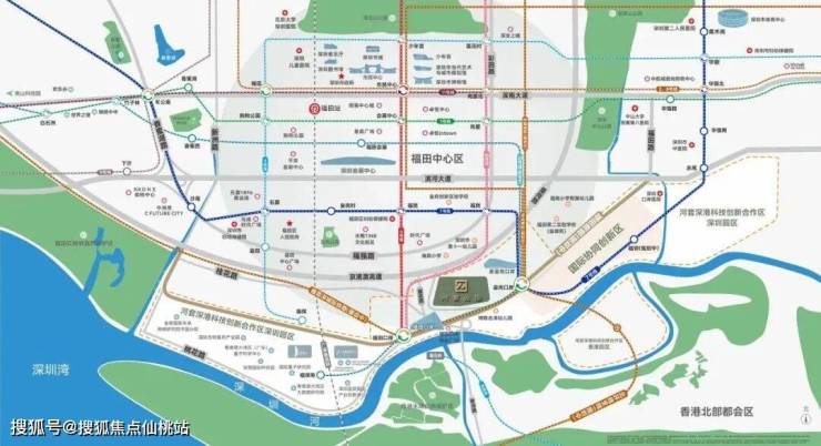 <交通>:坐拥两个通关口岸(皇岗口岸、福田口岸),直通地铁7号线、20号线,未来还有穗莞深城际可快速到达广州东莞。