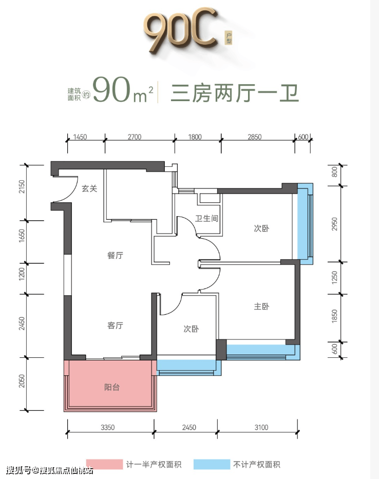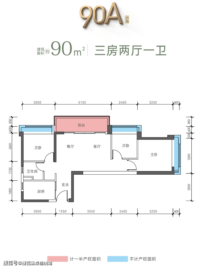 2栋人才房、1栋56层甲级写字楼及约2.2万㎡集中商业。人才房共960套,其中70㎡两房768套、90㎡三房192套,布局为6梯10户,总高55层。