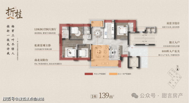 139 方: LDKB一空间 |800玄关库 | 南北对流阳台|270°环景飘窗|灵动双套房可四可五房