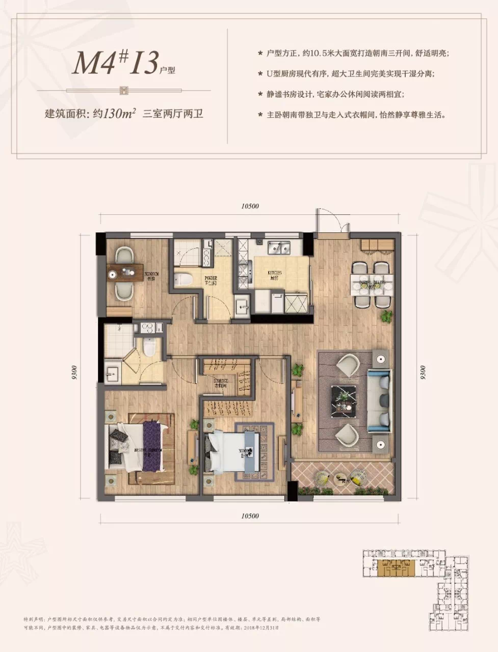 130方3房(阳台内包)在户型打造上,近130㎡的户型,营造的是一个完全舒适、放松的氛围:3.1米突破常规层高的室内布局,三开间大气朝南、卫生间干湿分离,豪华主卧带独卫及步入式衣帽间……丝毫没有常规公寓的闭塞与拥挤,恰是有了和大面宽住宅互搏的硬实力。