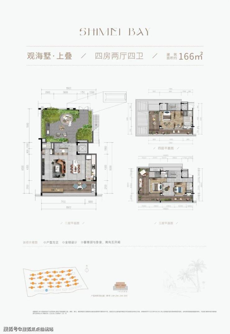|建筑面积约166㎡○户型方正,全明设计,享受阳光的律动○约8.9m大面宽,连接约270°IMAX观景露台○LDKB专享度假格局,清晰分区○主卧套房,连接环幕阳台,看尽汪洋大海○南向五开间,阳光在家里尽情撒欢○露天花园,独立入户,有天有地