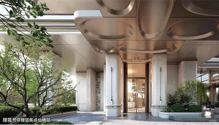 顶豪的仪式感,从入口的“千年树阵”便已然开启。项目大门口两侧种植4棵从西班牙进口的油橄榄树,属于世界五大活化石树种,树龄合计超1000岁,单棵价值数百万,仪式感远超常规名贵树种。