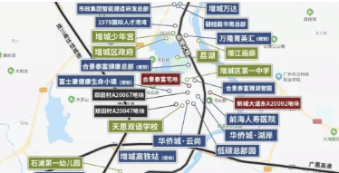 【交通路网】通过广惠高速、华南快速、增天高速(建设中)等快速通达广州市主城区,通过珠三角环线高速等高速公路快速通达深圳市区、深圳机场,实现一小时生活圈。