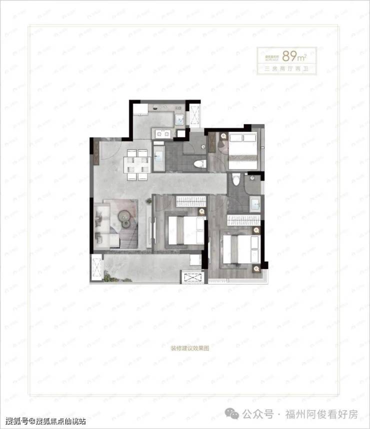 :紧凑三房两卫,三开间朝南,总价约160 万起,刚需首选。