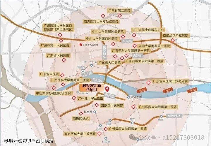 地铁:地块其实不近地铁站,最近2号线市二宫站距离约1.2公里,需要接驳,公共交通出行有壁。1站江南西/海珠广场,2站公园前/江南西;东侧10号线滨江东站在建中,未来可实现1站东湖,2站五羊邨,3站广州大道中。