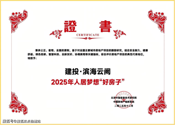 此前,滨海云阙已凭借“绿色低碳、健康舒适、协调美观”等优势,斩获中指研究院“2025人居梦想‘好房子’”殊荣。这份行业权威认可,叠加首开劲销的现象级热度,让滨海云阙成为高端市场的价值焦点,也为此次登榜TOP1奠定口碑基础。