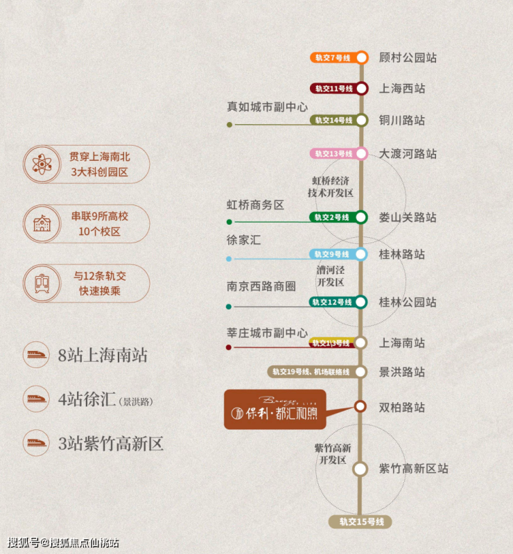 15号线双柏路站距项目直线距离约650米(数据来源于百度地图测绘),约20公里万亿产业带,贯穿上海南北3大科创园区,串联9所高校10个校区,与11条轨交快速换乘。