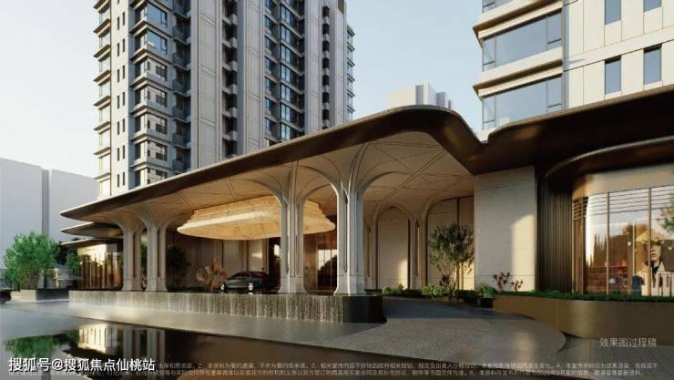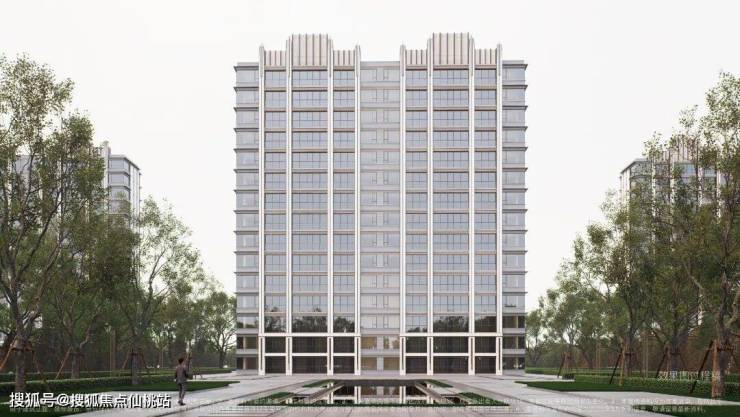 建筑与美学:融贯东方审美与现代简约的立面美学,立面采用精致铝线条(局部涂料)与现代质感玻璃打造,勾勒优雅轻盈的城市封面