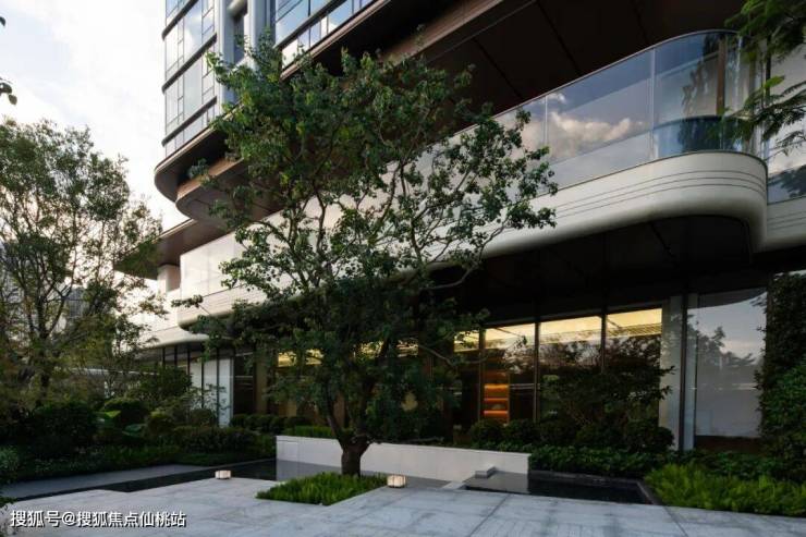 弧形倒角元素作为“符号”表现在各个细节部分,整体采用石材与金属线条相结合,赋予整个豪宅区温润典雅的形象气质。