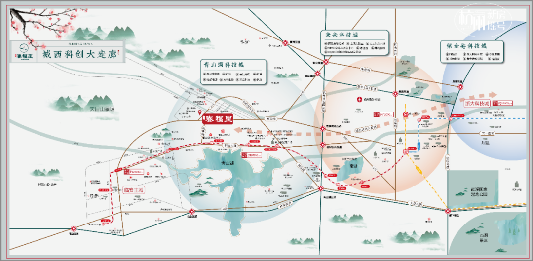 项目约30分钟车程杭城西,10分钟临安老城,8分钟青山湖;16号线接驳5号线地铁,项目临近规划临安高铁站,同时紧邻长西线串联G23、绕城高速西复线,全方位立体化交通,四通八达,际会全城。
