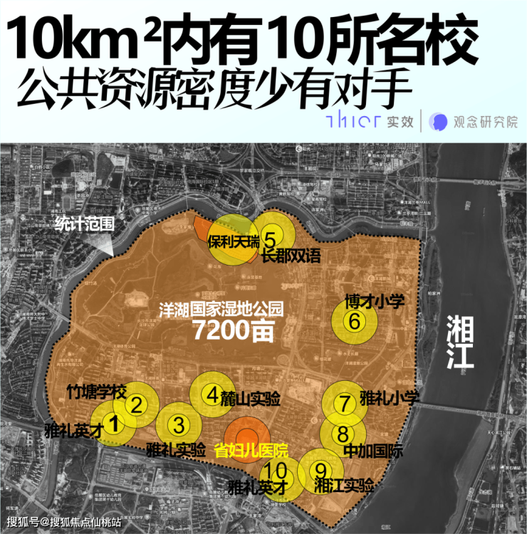 2)绝对优秀的城市公共资源:我数了一下,约10平方公里的洋湖核心区里,有10所中小学,且是长沙头部的雅礼和长郡系领办。