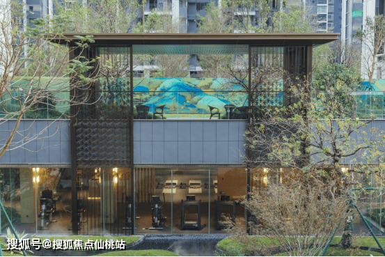 再往里走,是千方沉浸式东方禅意庭院,整个庭院分两层,上层为12M长界面景观会客厅——青云庭,可观赏到庭院的禅意景观,下层则是为云禧业主高端定制的环氧高端会所,拥有全明景观健身房等定制化多核功能空间,业主可以一边享受有氧运动的酣畅淋漓,一边观赏窗外庭院的光影律动,国际化的前沿生活方式在这里展开。