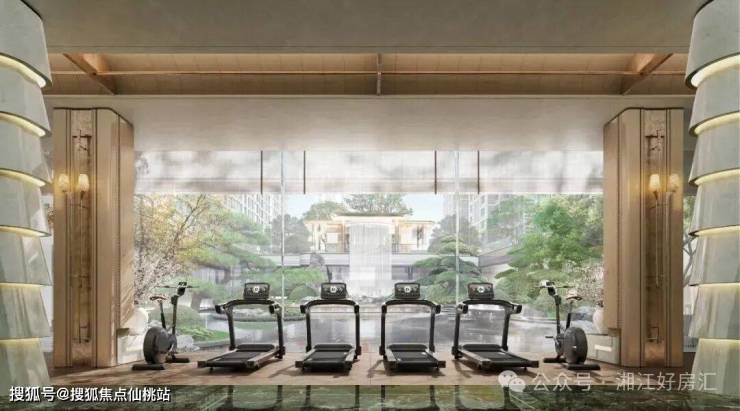 和恒温泳池一样,阳光健身房的配置同样是片区首个,透过大落地玻璃可以欣赏窗外下沉庭院/大瀑布,收获感官和生理上的双重享受。