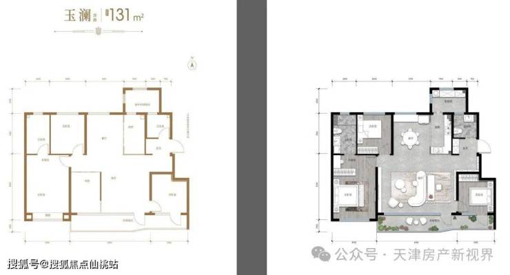 洋房131平米:约99.9%出房率(边户+中户)