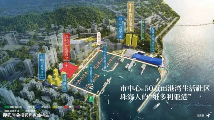 这里早已汇聚了成熟的商业、教育、医疗配套,九洲港码头、情侣路等地标近在咫尺。因此,地块面积虽然有限,但一线滨水+游艇码头+“四化”新型住宅等优势加持,项目有着与生俱来的优质基因。