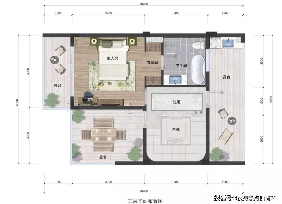 ● 全功能主人层设计,10.7米大开间豪华套房布局,独享尊贵