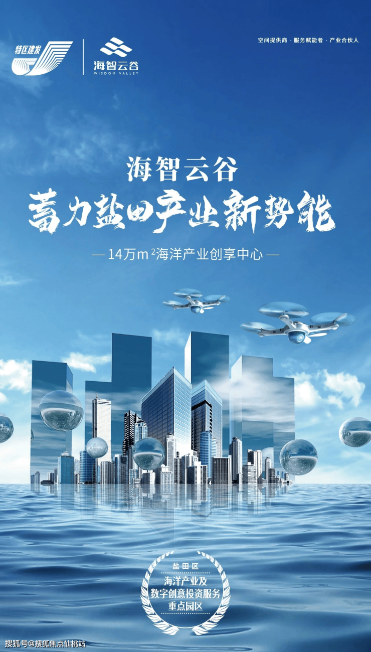 作为 盐田区”海洋产业及数字创意投资服务重点园区“——海智云谷顺应海洋经济生态,打造14万㎡海洋产业创享中心,汇聚海洋物流、海洋商贸、海洋新兴技术、海洋文化创意、海洋金融服务、海洋科技服务等全产业链企业,覆盖从创业、孵化、加速成长到集团总部的企业全生命发展周期,引领盐田区海洋企业乘风破浪,促进盐田区总部经济发展腾飞。