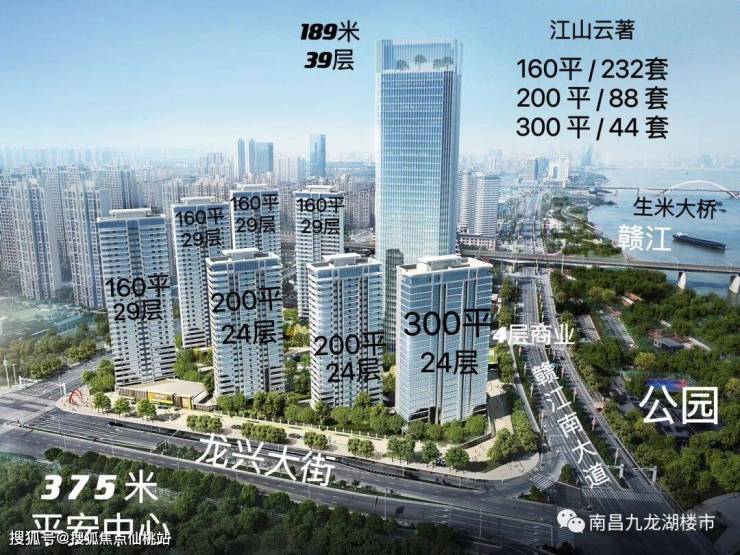 南昌有关部门公布了九龙湖纯一线江景大平层,江山云著的规划方案和效果图,面积约166平4/2/3-210平5/2/3-300平5/2/3-430平6/2/3-630平6/2/3左右,一梯一户设计,学区划分南师附小九龙湖校区和南昌外国语学校九龙湖初中部,东面是赣江和赣江市民公园四期,南面是江西省第一高楼南昌平安金融中心【高375米】,西面是拆迁安置房新琚花园,北面是赣商中心,距离南昌地铁四号线安丰站500米 。