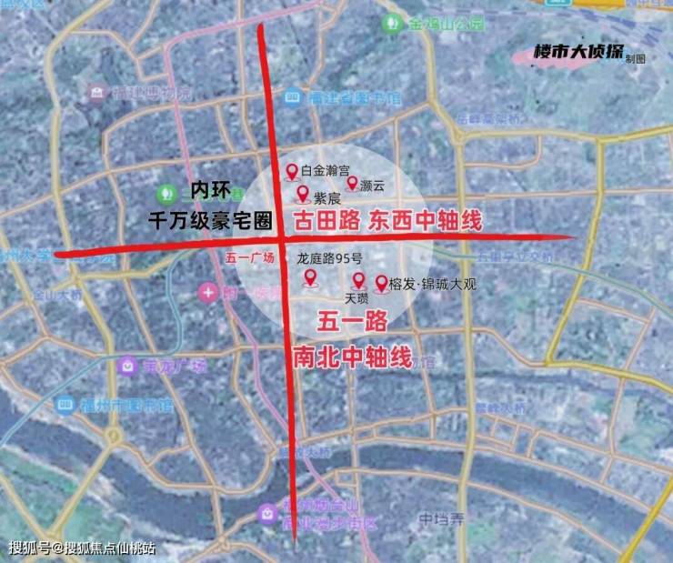 那么,请你把地图对折一下,以五一路为镜面,看看东侧——锦珹大观就在这里,同样是内环,同样紧邻城市南北轴(五一路)和一条人文河流(晋安河)。这种地理结构的相似性,难道不应该引发价值的对标思考吗?
