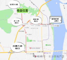 l地势导致主要依靠门口的金星大道去连接交通路网,北二环路口1.26公里,银杉路路口4公里,福元路大桥路口4.98公里,岳麓大道路口4.57公里