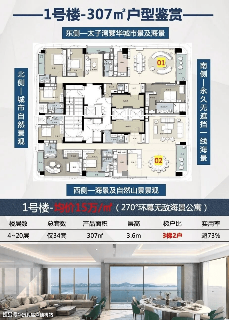 奢华体验:亲海阳台总面宽超12米,呈现无遮挡永久一线海景