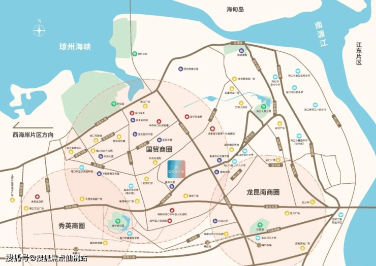 占踞海秀路-龙昆路十字形干道路网中轴区位