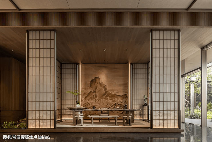 到视线所及的一幅青瓷屏风,喧嚣与宁静分界,再到仰观天地,“泗水归堂”,汇纳八方之财。