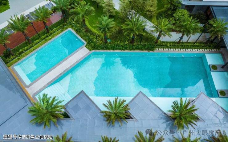 Tiffany蓝玻璃泳池,旁边就是休闲的假日生活馆。泳池参考三亚奢华酒店edition,四周种植银海枣、红花玉蕊等热带植物,别有一番风情,夏天纵身一跃,就能享受夏日清凉,宛如度假一般的奇妙体验。