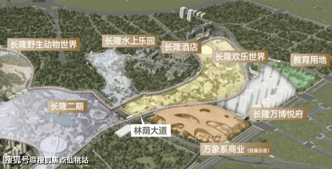 还将围绕长隆绿心打造3公里长环园区“林荫大道”,分段赋予活力街、漫步道、乐园径等不同主题,提供全龄友好的慢行休憩空间,为住区带来上千亩自然生态城市绿洲。