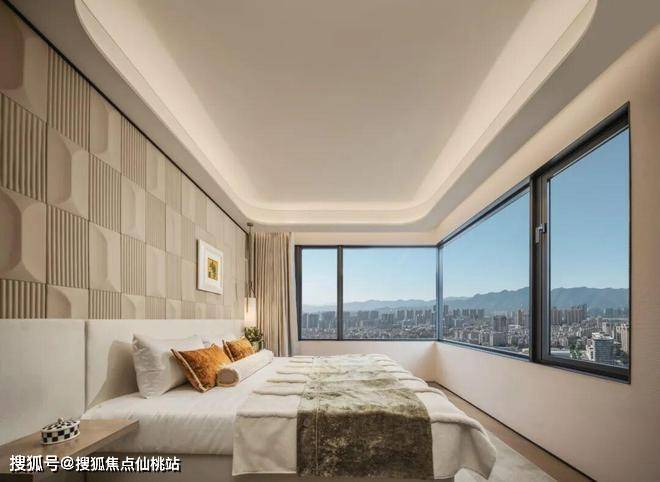 户型设计则紧紧围绕“采光”与“观景”两大核心做足文章。所有户型南向均配备超大面宽阳台。端户的主卧更是贴心设计了270度大型折角窗,将阳光与闽江、城市双重景观最大限度地引入室内,有了“南瞰金山 北眺闽江”的风景。