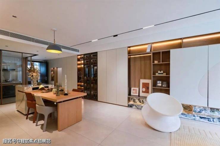 艺术的空间,让生活在日常中展现出诗性。江东上院户型空间全屋采用通顶门、无主灯设计,拉层高的同时更好的扩大视觉空间,让空间感更通透开阔。