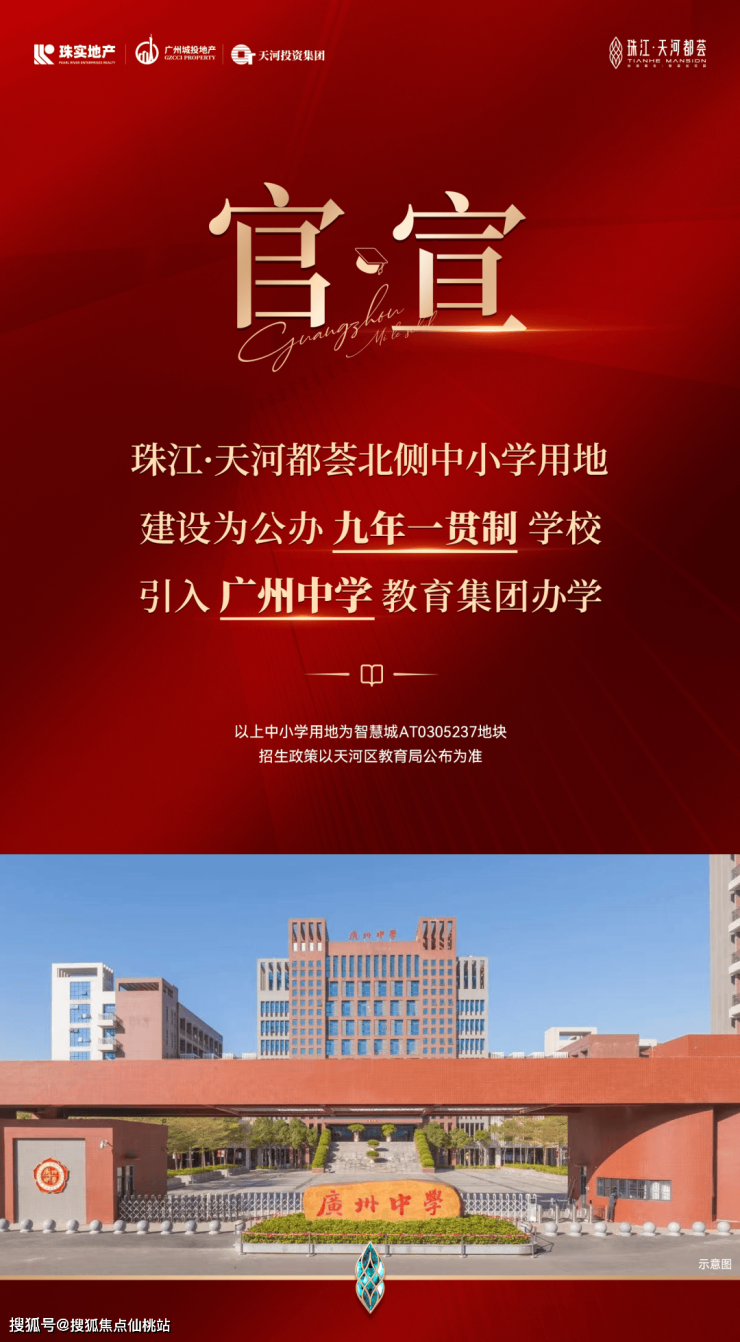 天河都荟未开盘就先正式官宣项目北侧中小学用地,引入广州中学教育集团办学。