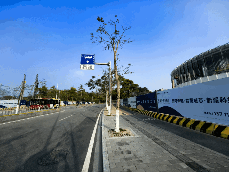 周边没有村屋,都是商业或者办公楼,或者山体和湖泊,道路宽敞,环境宜居。